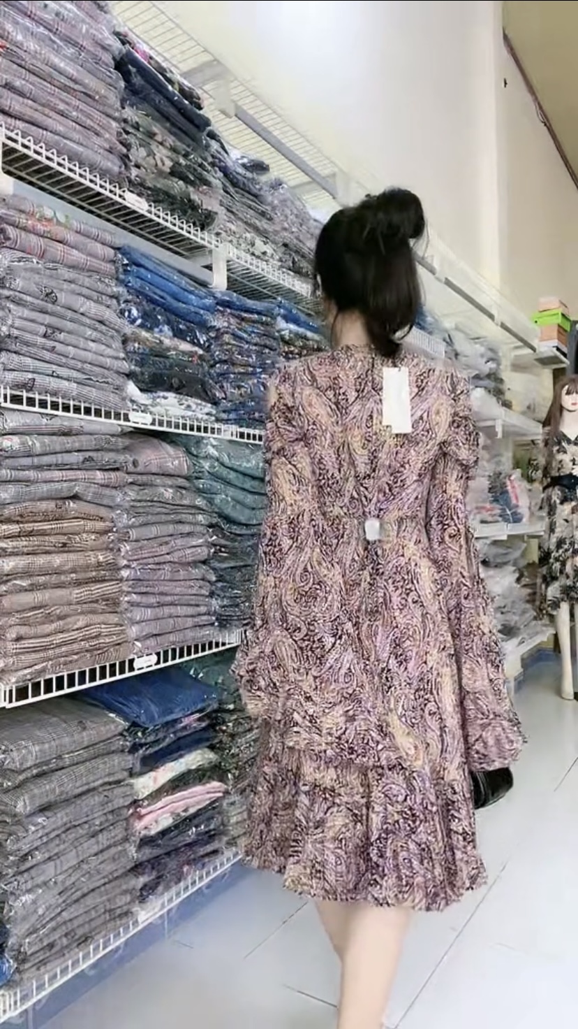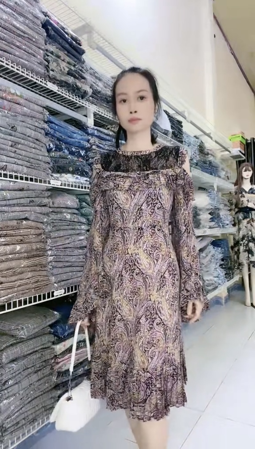 Đầm xếp ly in hoa tay cánh quạt quý phái mát mẻ giúp thon gọn tay vai Mã: DLSG017 Màu: Coffee Chất liệu: Lụa, ren, polyester Số đo vòng1/vòng2(cm): 88/72 ------------------------------------- Hình ảnh không qua