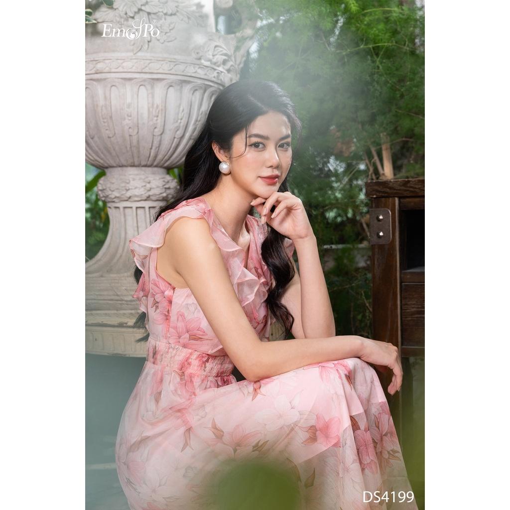 ✨Đầm hoa xòe, cổ tim, bèo thân trên Emspo DS4199