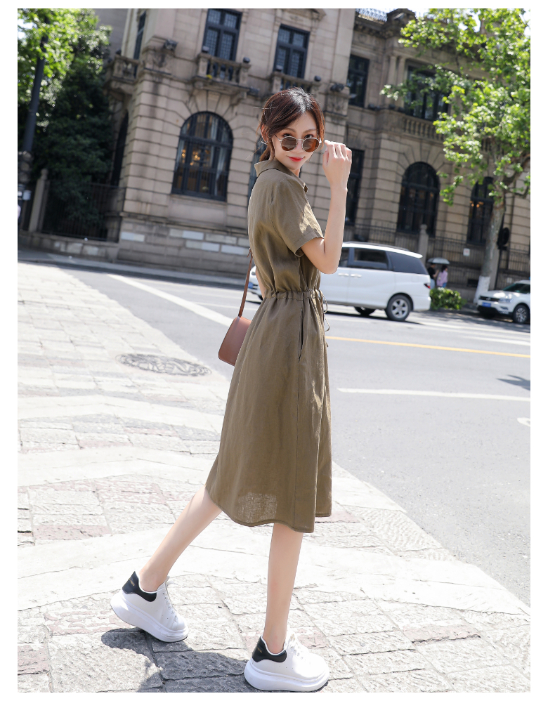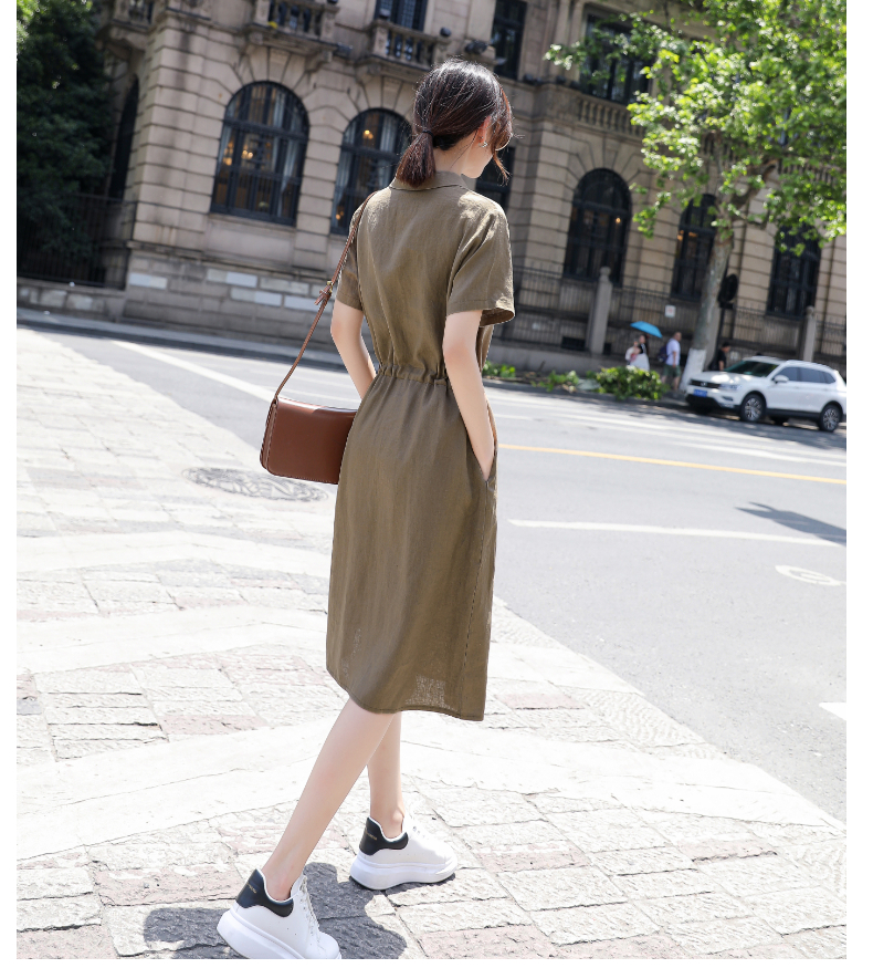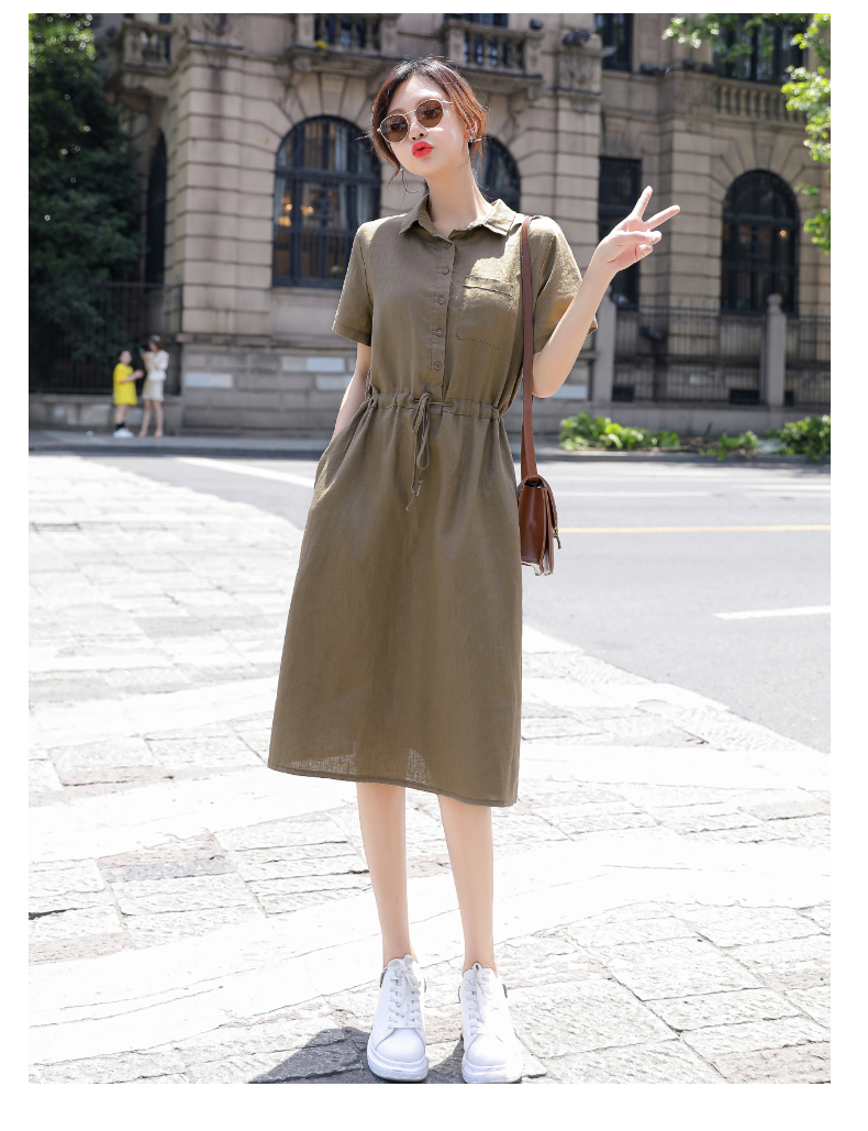 Đầm Suông Linen Cổ Đức,Váy Sơ mi Công Sở, Dạo Phố - Phong Cách Thời Trang Hàn Quốc
