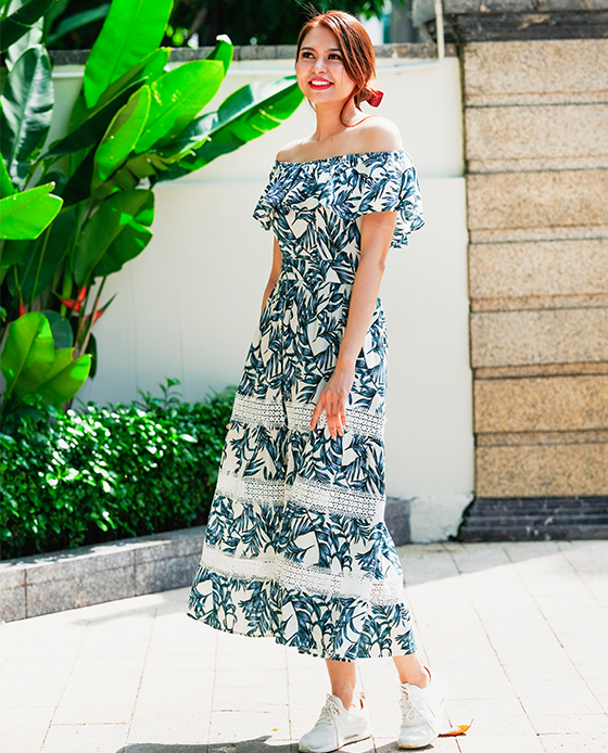 Đầm Maxi Trễ Vai Hoạ Tiết - bản tình ca giao mùa