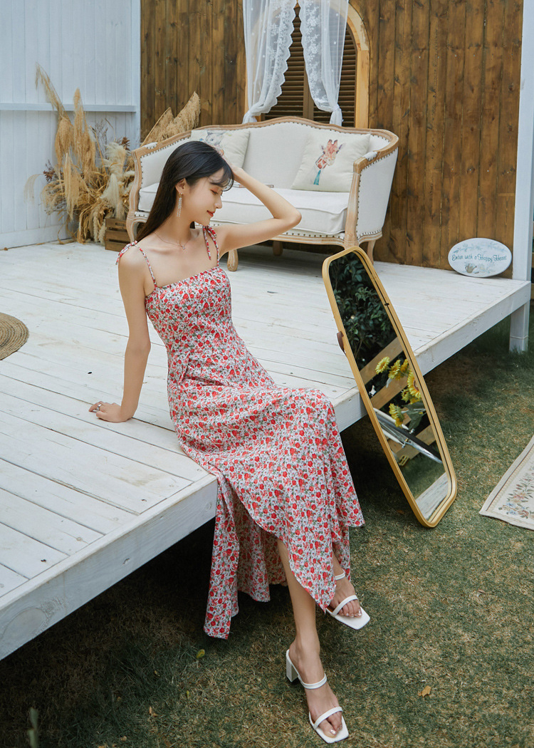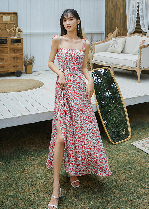 ✨Đầm maxi xẻ tà dàng dài, họa tiết hoa nhí màu đẹp, chất voan tơ cao cấp, váy 2 kiểu mặc: 2 dây và vai trần | MX056