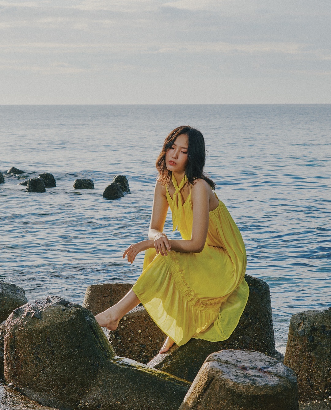 ღ THÔNG TIN SẢN PHẨM:   Tên sản phẩm: Đầm vàng chanh cổ yếm   Chất liệu: Chất gân ý·   Chi tiết sản phẩm: không lót, không túi   Thông số size: S, M,
