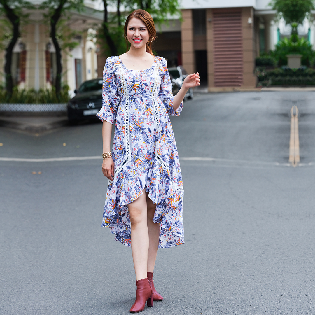 Những bông hoa không quá sặc sỡ biến tấu cùng dải ren lạ mắt của chiếc Đầm Đuôi Cá sẽ giúp nhoà đi những khuyết điểm và khéo léo tôn những ưu điểm vốn có trên cơ thể người phụ nữ.