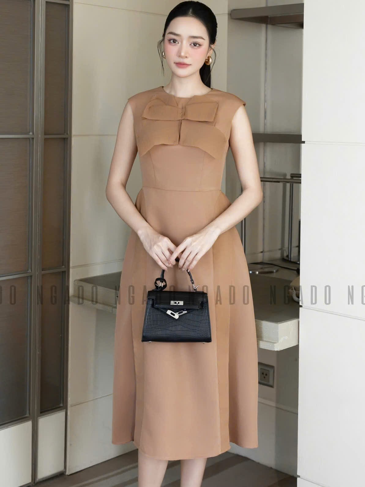 ✨Đầm nâu sát nách NGADO , đầm công sở , dự tiệc