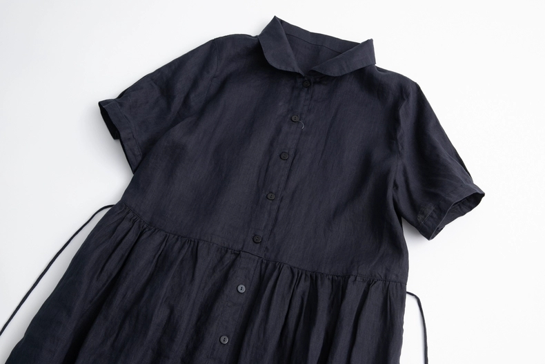✨Đầm nữ suông dáng xòe cổ sen phối cúc kín đáo có kèm dây thắt eo chất liệu Linen cao cấp, thanh lịch