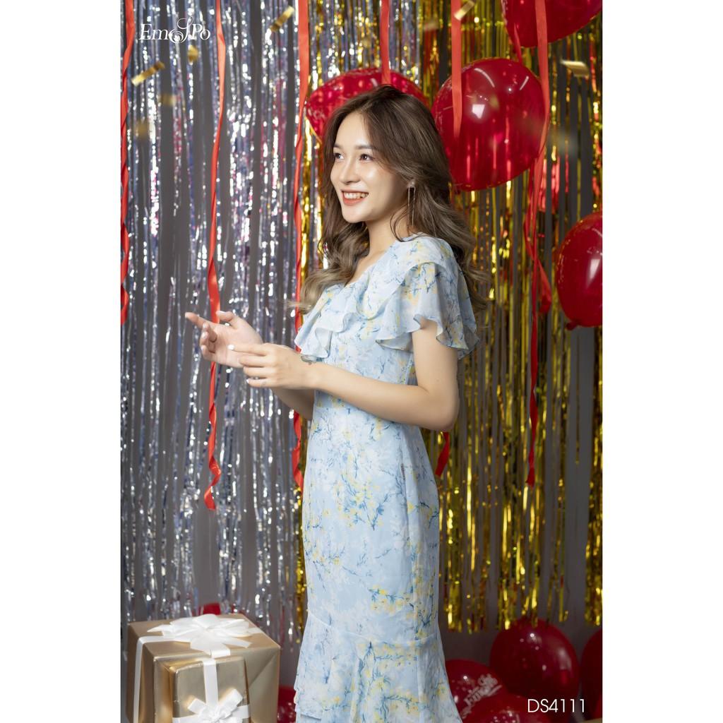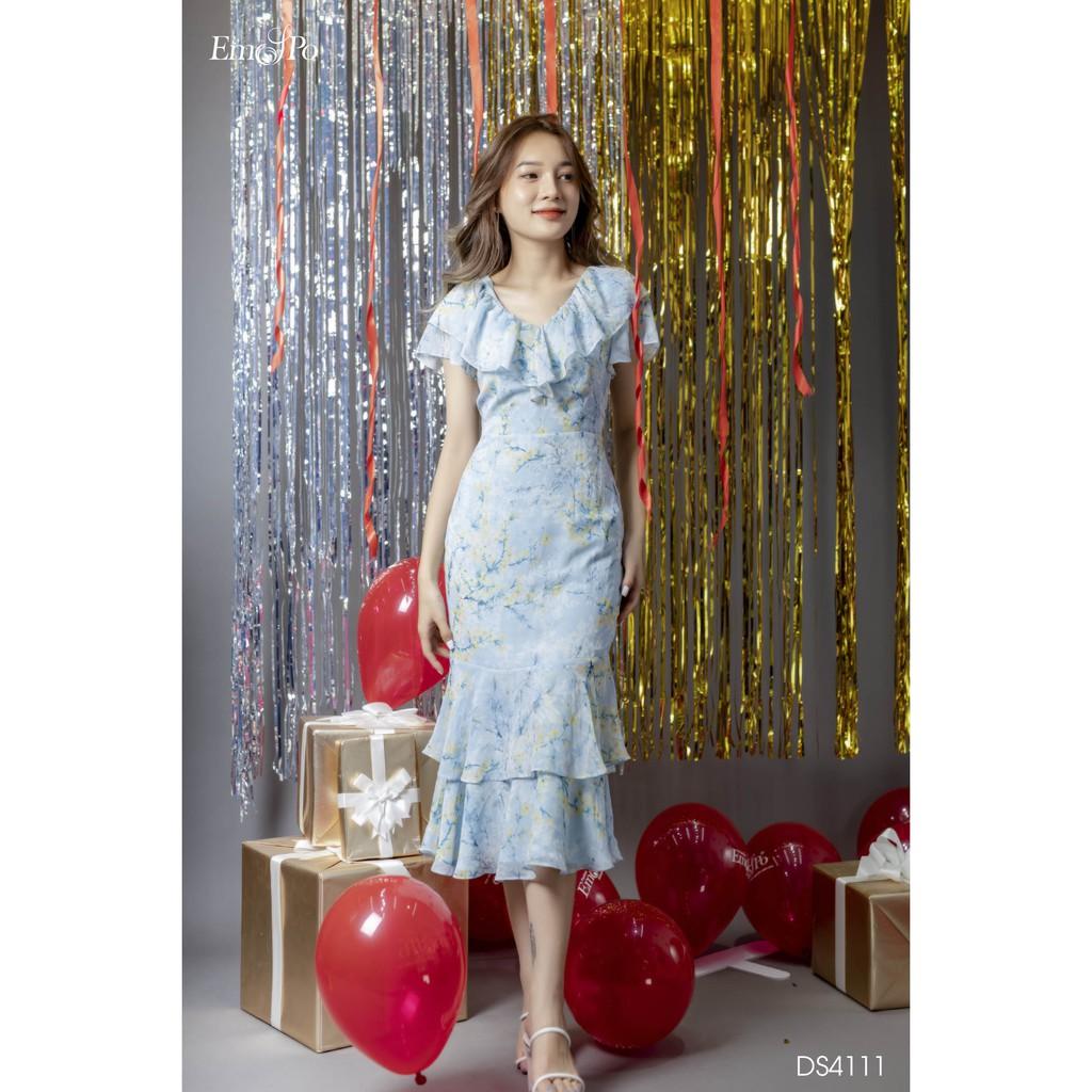 "Đầm ôm xếp tầng Emspo Milestone, cổ V viền bèo DS4111