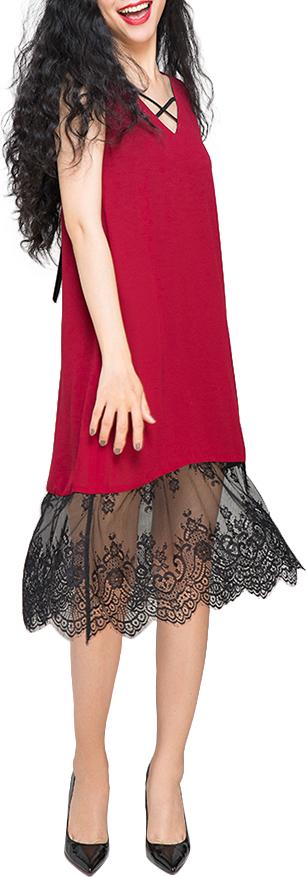Mua tại Tiktok- Đầm Suông Hity DRE058 - Đỏ được làm từ chất liệu polyester phối ren thoáng mát nhẹ nhàng, nữ tính, mềm mại, kết hợp với kiểu dáng đầm suông trẻ trung.