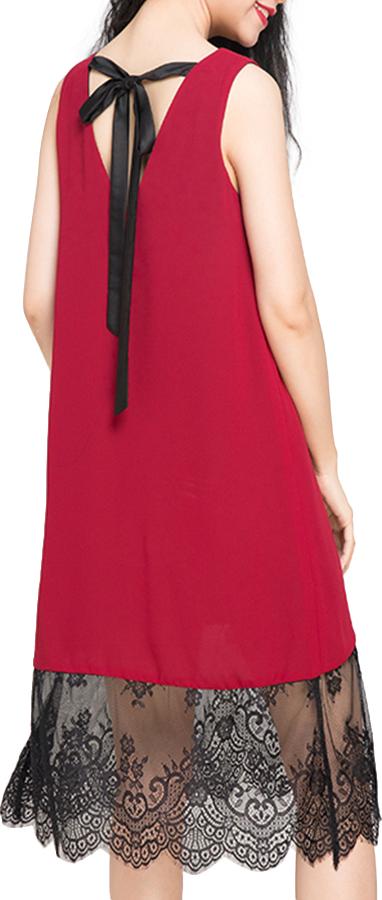 Đầm Suông Đỏ Đô Phối Ren Cao Cấp DL341