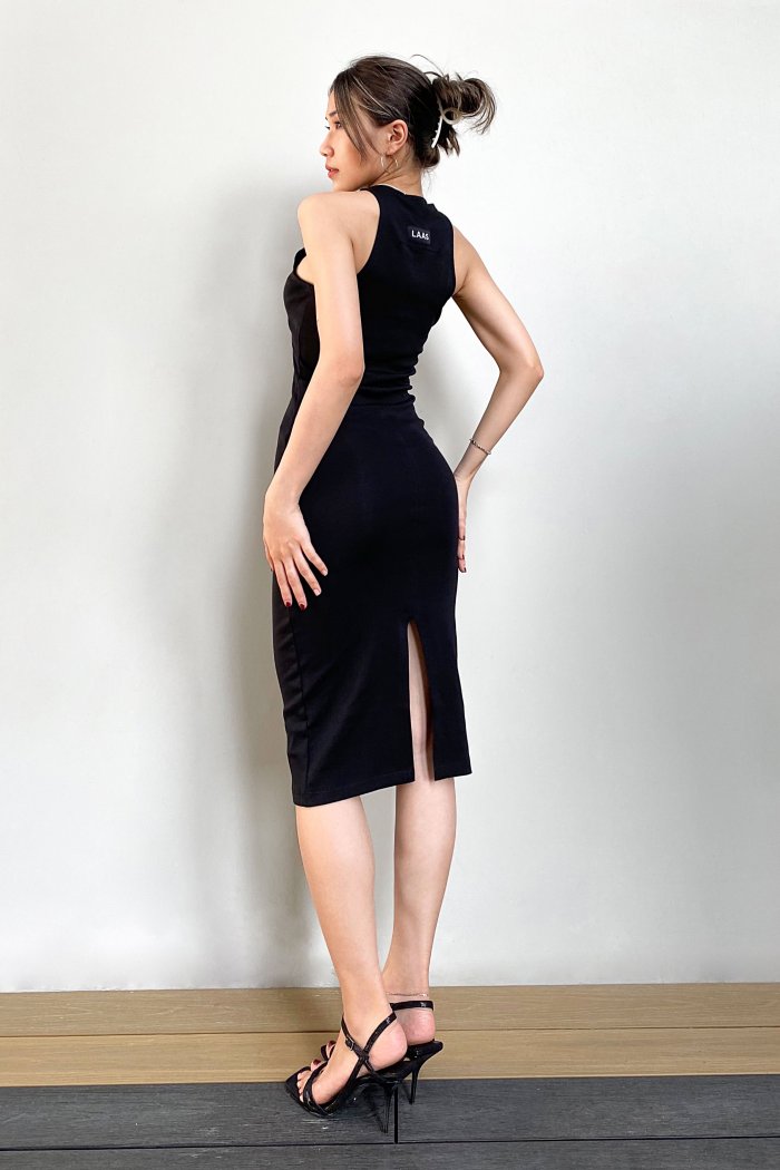 Đầm suông dài kiểu sát nách xẻ tà (Đen) - Cindela Việt Nam