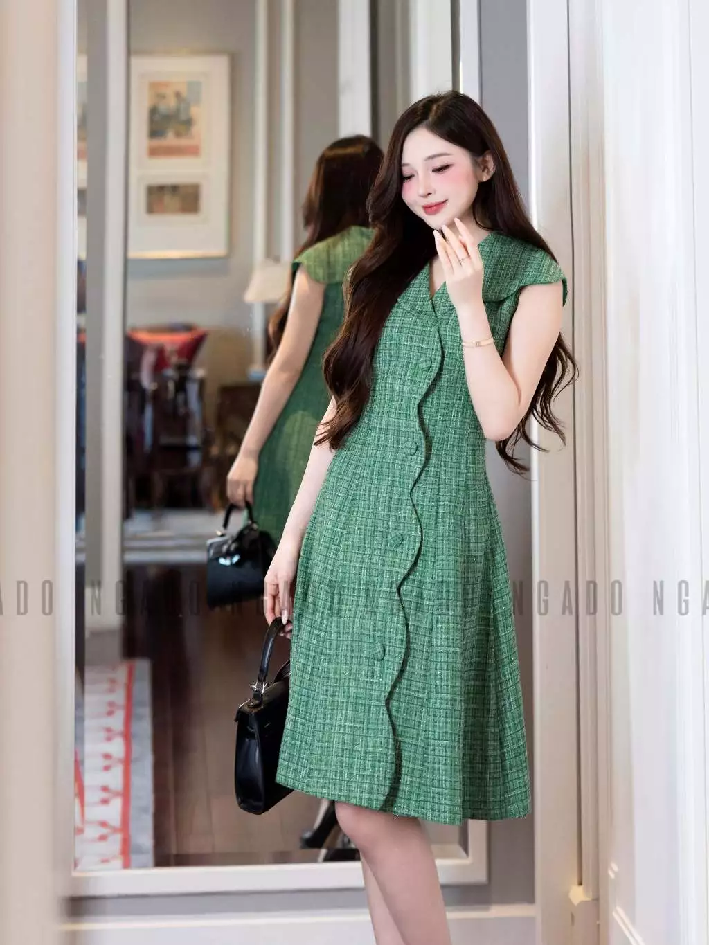 Mua tại Tiktokღ THÔNG TIN SẢN PHẨM: Tên sản phẩm: Đầm tweed xanh cổ vest Chất liệu: Chất tweed Chi tiết sản phẩm: có lót, không túi Thông số size: S, M, L, XL • Thương hiệu: NGADO • Xuất xứ: Việt Nam