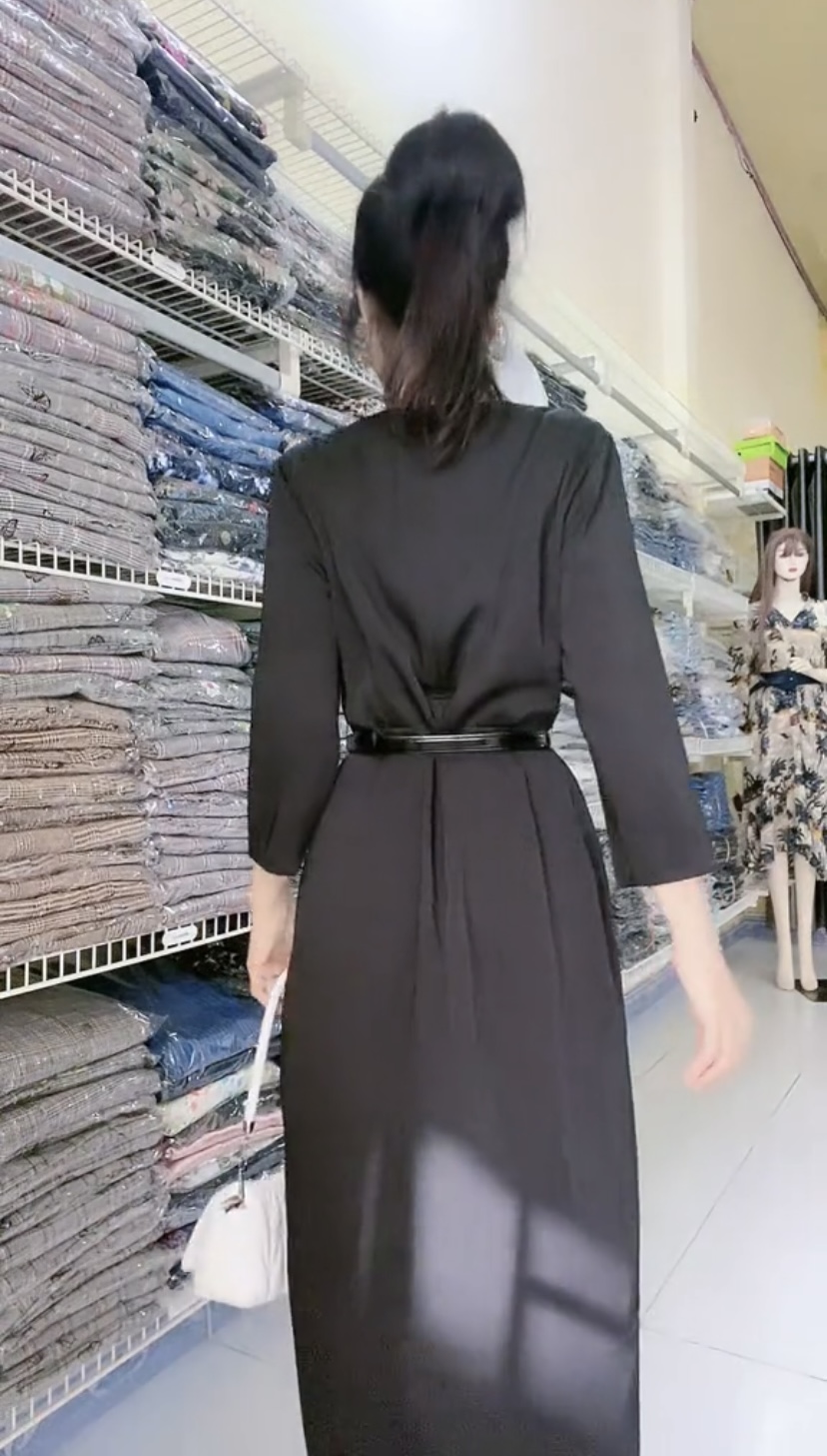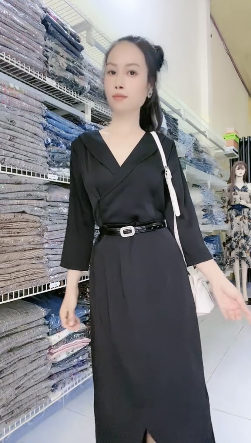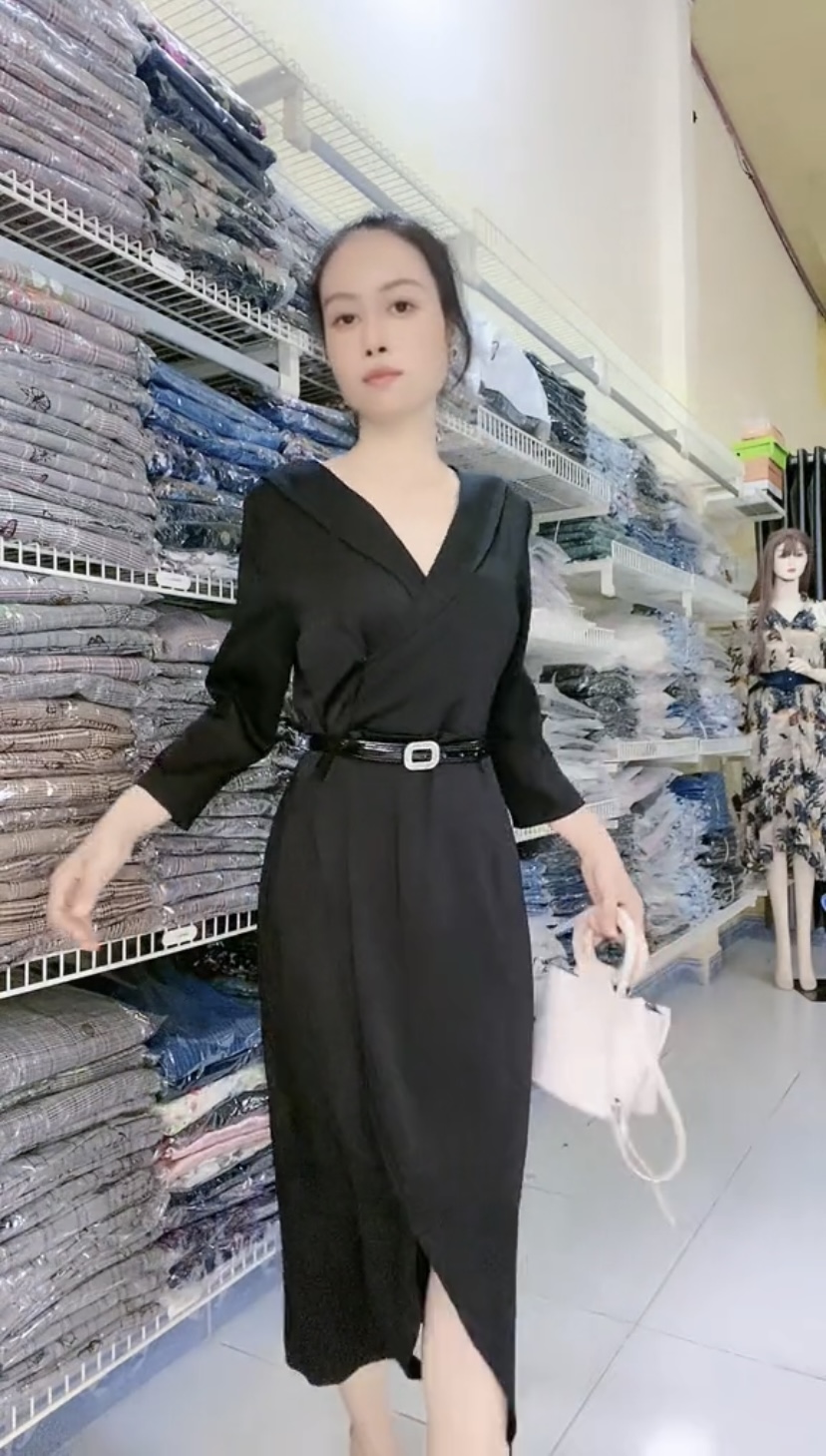 ✨Đầm xẻ cao cấp màu đen thon gọn lại dễ mix đồ.