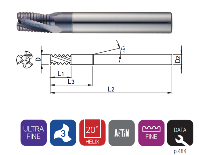 Widin Series PK503 Thương hiệu: Widin (Hàn Quốc) Mã sản phẩm: PK503 140 Dao phay phá thô 14mm 3 me cắt