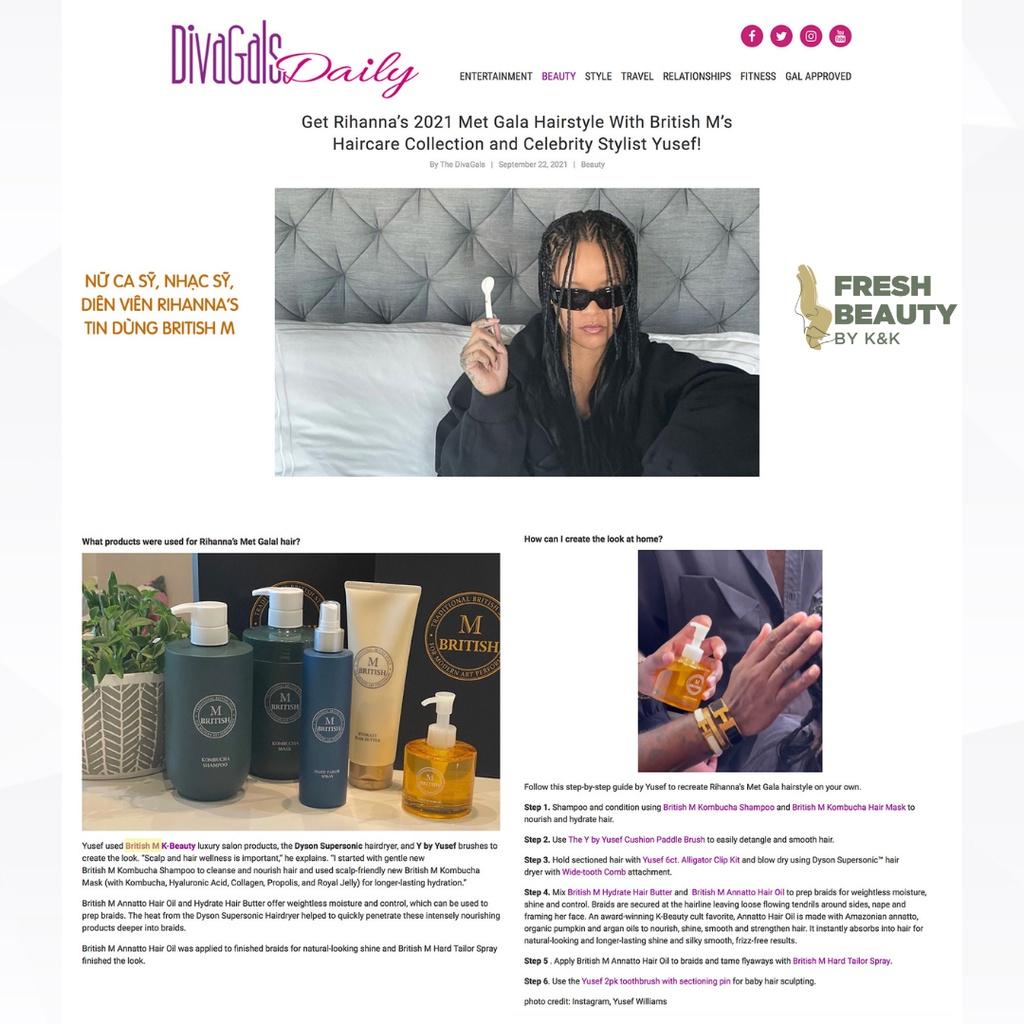 Dầu dưỡng tóc BRITISH M Annatto Hair Oil là sản phẩm chăm sóc tóc chủ lực trong các tiệm mỹ phẩm lớn ở Gangnam, Seoul, Hàn Quốc - nơi phục vụ cho những người nổi tiếng và idol các nhóm nhạc K-POP. Sản phẩm đã có mặt tại các nước Mỹ, Anh, Đức, Pháp, Hà lan, Romani, Áo, N và được lựa chọn làm quà tặng cho các Nghệ sỹ tại lễ trao giải thưởng âm nhạc Grammy Awards 2021 và Điện ảnh Oscar 2021. Ngoài ra, dầu dưỡng tóc BRITISH M Annatto Hair Oil là một trong những sản phẩm được ngôi sao Rihanna yêu thích và tin dùng.