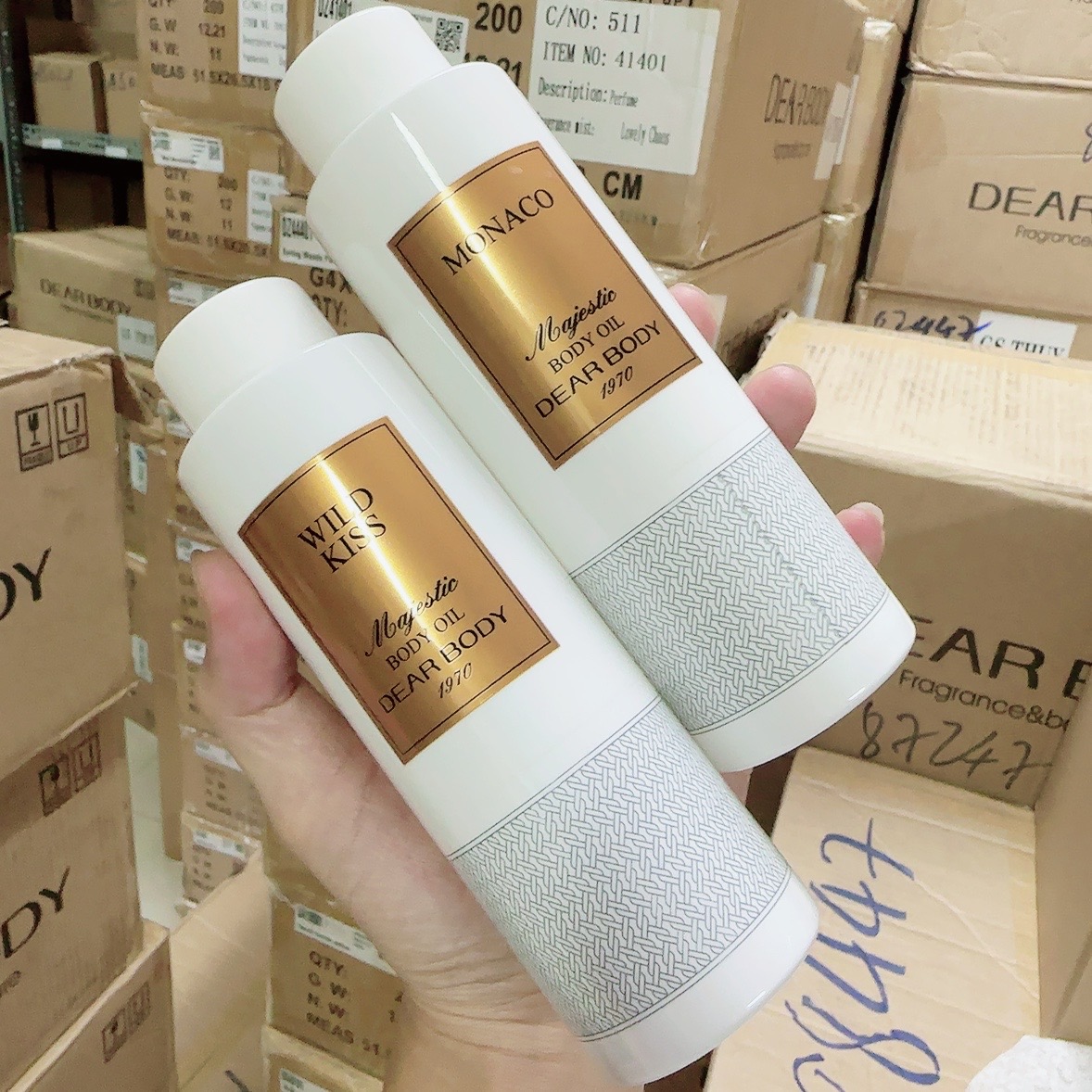 Dầu Dưỡng Thể Massage Hương Nước Hoa DEAR BODY Majestic Body Oil 270ml là loại dầu dưỡng thể được chiết xuất từ các loại hạt trong tự nhiên. Giàu vitamin, khoáng chất, axit béo và chất chống oxy hóa giúp nuôi dưỡng làn da khỏe mạnh mịn màng. Dầu Dưỡng Thể Massage Hương Nước Hoa DEAR BODY Majestic Body Oil 270ml] là sự kết hợp hoàn hảo giữa dầu hoa anh thảo,dầu dừa và dầu hoa hướng dương giúp thư giãn các giác quan và giảm bớt sự căng thẳng, mang lại làn da mịn màng, mượt mà cùng mùi hương tự nhiên quyến rũ. Mô tả mùi: SHEER BEAUTY: Mùi thơm giản dị và tinh tế toát lên vẻ nữ tính của phái đẹp. FANTASTIC: Khuấy động một cảm giác khó tả buộc lòng bạn phải thuận theo những cám dỗ hương thơm đầy nổi loạn. LOVE IN THE WHITE: Tượng trưng cho một tình yêu lãng mạn không cầu kì nhưng lại vô cùng thơ mộng khi mang trong mình nốt hương chủ yếu bắt nguồn từ phương Đông. MARGARITA: Dễ dàng cảm nhận hương hoa cỏ trái cây như lạc vào khu vườn mùa hè đầy sắc màu. MONACO: Phong cách mùi hương cổ điển toát lên một sự thanh tao, quý phái và cả hiện đại. WILD KISS: Hương thơm cuốn hút nhưng thanh mát như một nụ hôn hoang dại nồng nàn. Cách dùng: Sau khi tắm rửa sạch sẽ, bạn thoa đều Dầu Dưỡng Thể Massage Hương Nước Hoa DEAR BODY Majestic Body Oil 270ml lên cơ thể mat-xa theo đường xoắn ốc với tinh dầu từ 15- 30 phút cho dưỡng chất thấm vào da. Không cần tắm lại bằng nước, có thể dùng thường xuyên nếu muốn.Thời gian dùng tốt nhất là 1 giờ trước khi đi ngủ. Dung tích: 270ml Khuyên dùng: Để giữ mùi hương lâu bền hơn và cho làn da hoàn hảo, bạn nên dùng kèm với các sản phẩm cùng dòng như: Body mist, Sữa tắm nước hoa, Sữa dưỡng thể, Kem dưỡng thể, Tẩy tế bào chết toàn thân. Bảo quản : Bảo quản ở nhiệt độ phòng, tránh ánh nắng trực tiếp. Xuất xứ: DEAR BODY LONDON, UK #bodyoil #duongthe #dauduongthe #daumassage #massage #duongam #nuochoa #chamsoccothe #dearbody #dearbodyvietnam
