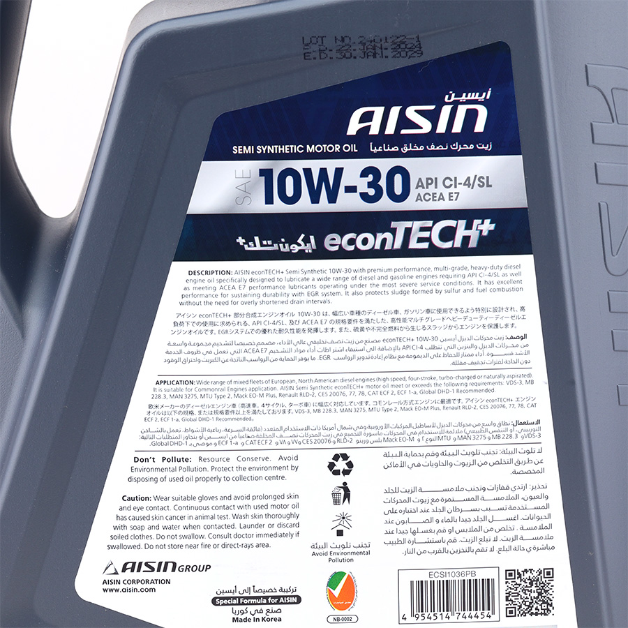 ✨Dầu Nhớt Bán Tổng Hợp AISIN Econtech+ CI4/SL 10W30 6 Lít ECSI1036PB - Nhập Khẩu Chính Hãng