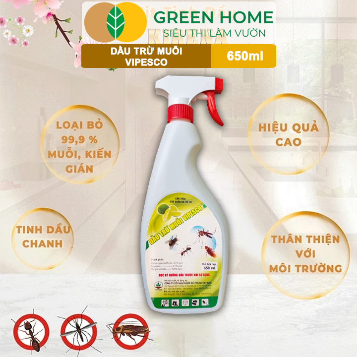 ✨Dầu Trừ Muỗi Vipesco GreenHome, Chai 650Ml, Đặc Trị Muỗi, Kiến, Gián Nhanh Chóng, Hiệu Quả Và An Toàn