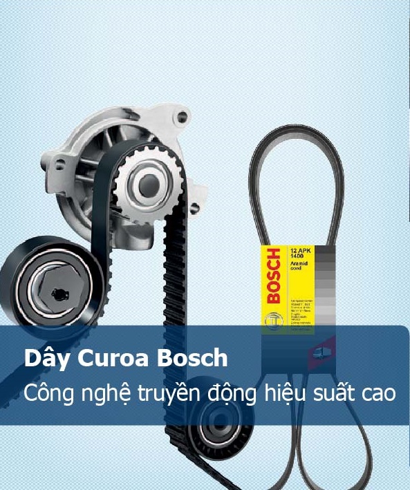 Dây curoa Bosch thay thế hoàn hảo cho phụ tùng nguyên bản theo xe Đặc trưng của dây curoa Bosch: - Mặt trước được cấu tạo bởi các sợi chịu lực bằng Polyester cấu trúc