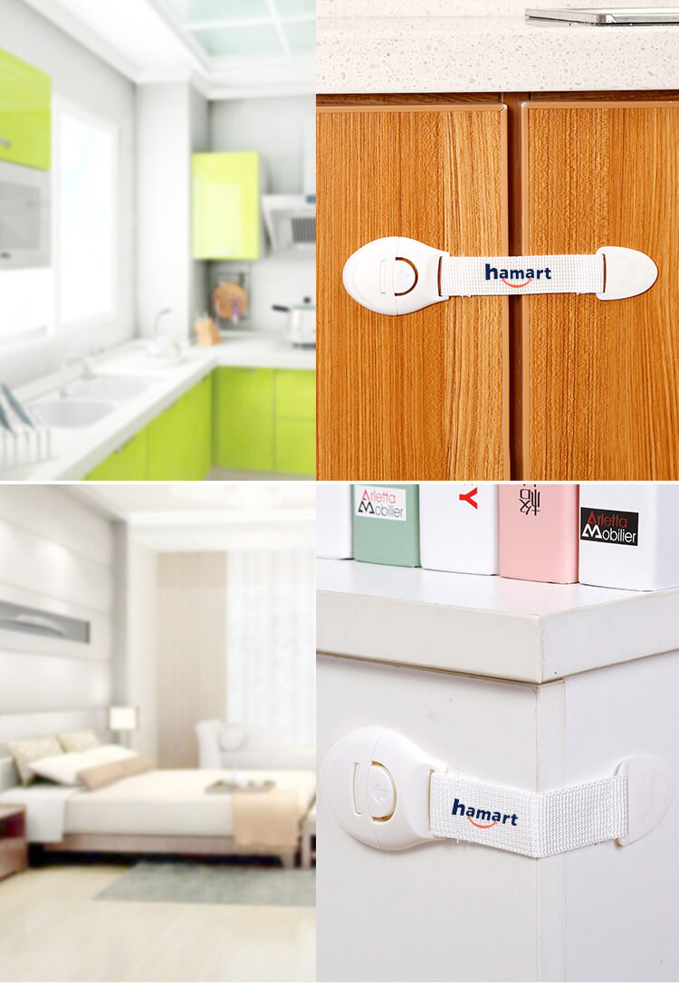 - Sử dụng sản phẩm sẽ giúp bạn khóa chặt cửa tủ lạnh ngăn kéo, tủ đồ một cách nhanh chóng, từ đó giảm thiểu nguy cơ gây nguy hiểm cho bé yêu bởi các vật dụng bên trong tủ.