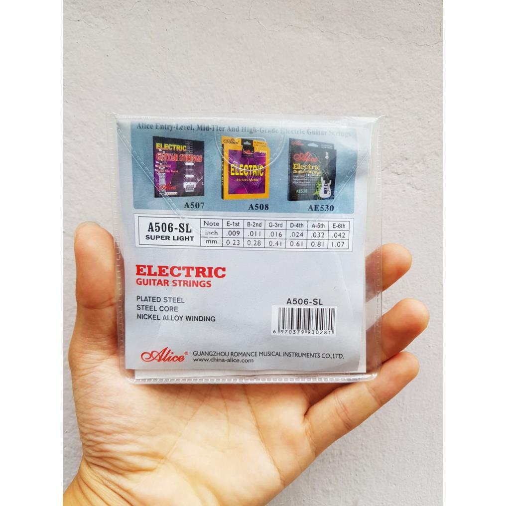 Mua tại TiktokDÂY ĐÀN GUITAR ĐIỆN ALICE A506 MÔ TẢ: Dây đàn Guitar Điện Alice A506 Chất lượng tốt trong tầm giá. Dây size 9 bấm vừa tay, dây nhỏ bấm nhẹ, ít đau đầu ngón tay hơn. Thời gian trung bình xài có thể đến 1 tháng (Tùy vào môi trường, tần suất sử dụng cũng như cách vệ sinh dây đúng cách của Guitarist) Kích cỡ: 9: Super Light (SL). DÂY ĐÀN GUITAR ĐIỆN ALICE A506