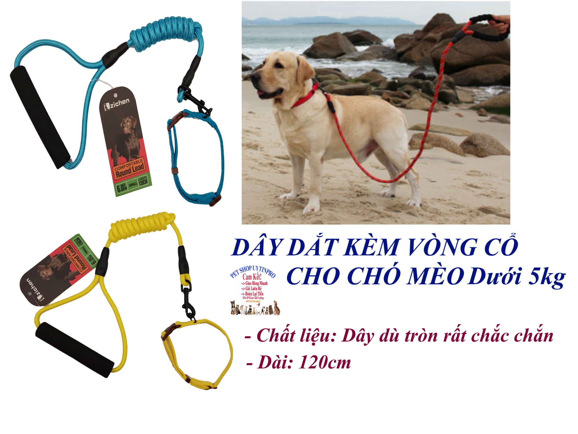 Sản phẩm luôn có sẵn tại: PET SHOP UYTINPRO Giá bán/ 1 cái gồm dây dắt và vòng cổ