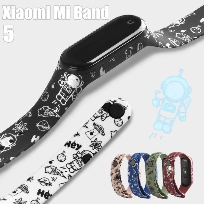 ✨Dây Đeo Cao Su Xiaomi Miband 5 hoạ tiết cartoon phi hành gia dây Chất Lượng cao