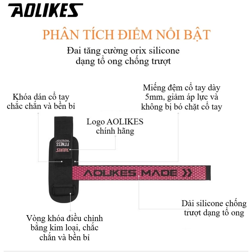 Dây Kéo Lưng Trợ Lực Cổ Tay Tập GYM Lifting Straps Aolikes AL-7637