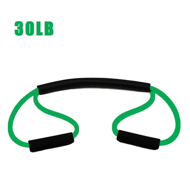 Bộ dây đàn hồi tập thể lực có 5 dây, mỗi dây có mức trọng lượng khác nhau, từ nhẹ tới nặng (8 lbs, 15 lbs, 20 lbs, 25 lbs, 30 lbs) có thể