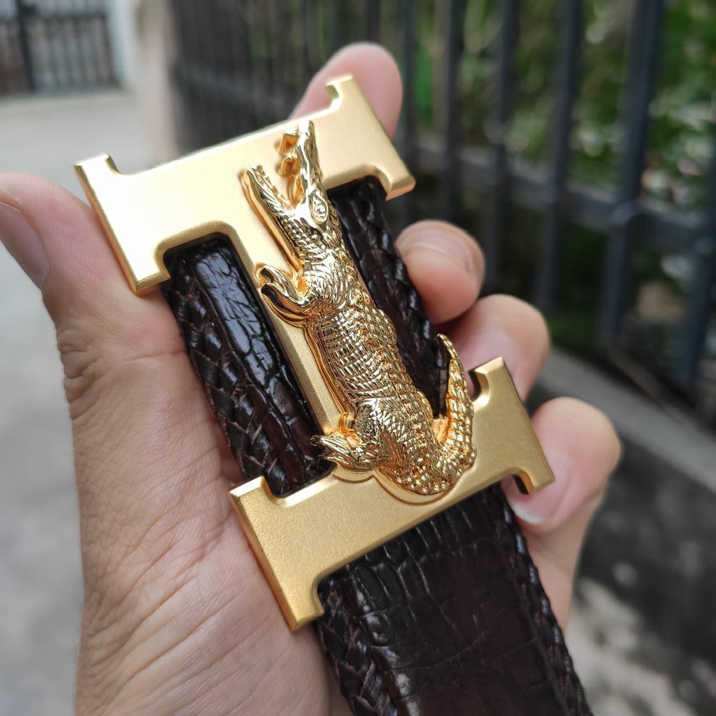 [SIÊU PHẨM] Dây lưng cá sấu liền tấm da bụng 4cm. Khóa thép chữ H doanh nhân H30D