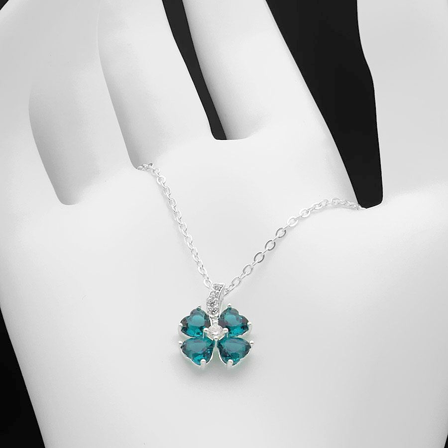✨Dây Và Mặt Dây Chuyền Nữ Cỏ 4 Lá May Mắn Màu Xanh BẠC HIỂU MINH DMD015BL