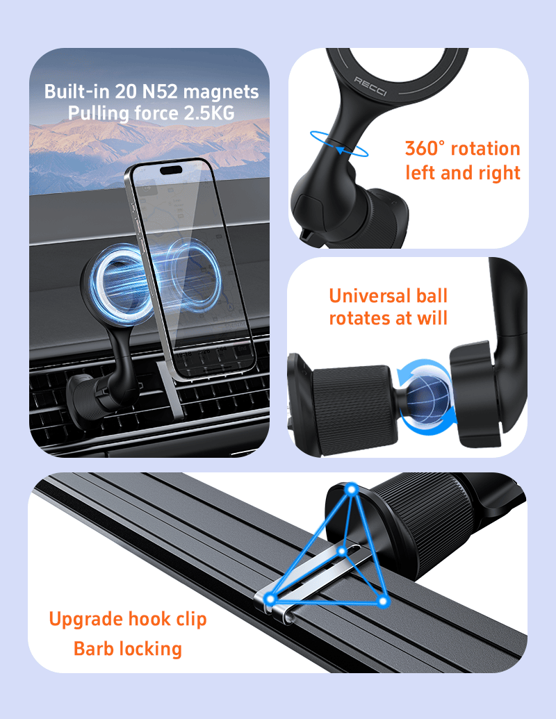✨Đế giữ điện thoại nam châm dùng trên xe ô tô RECCI RHO-C42 Hàng chính hãng