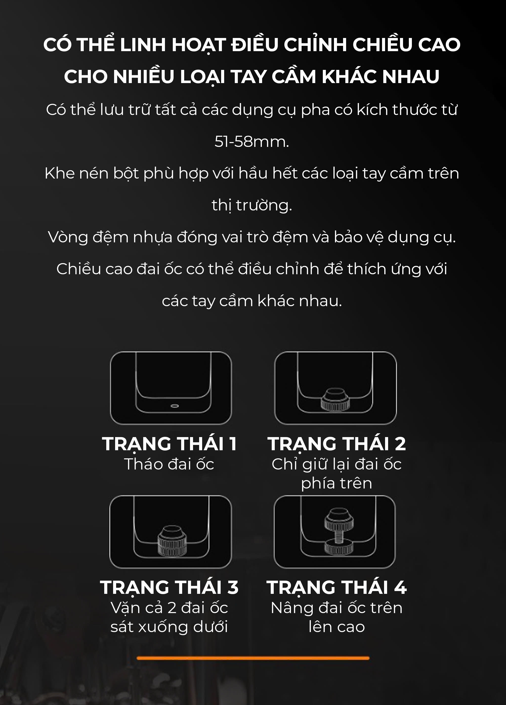 ️ Hỗ trợ barista nén cà phê dễ dàng hơn, cân bằng hơn, tăng hiệu suất pha chế.