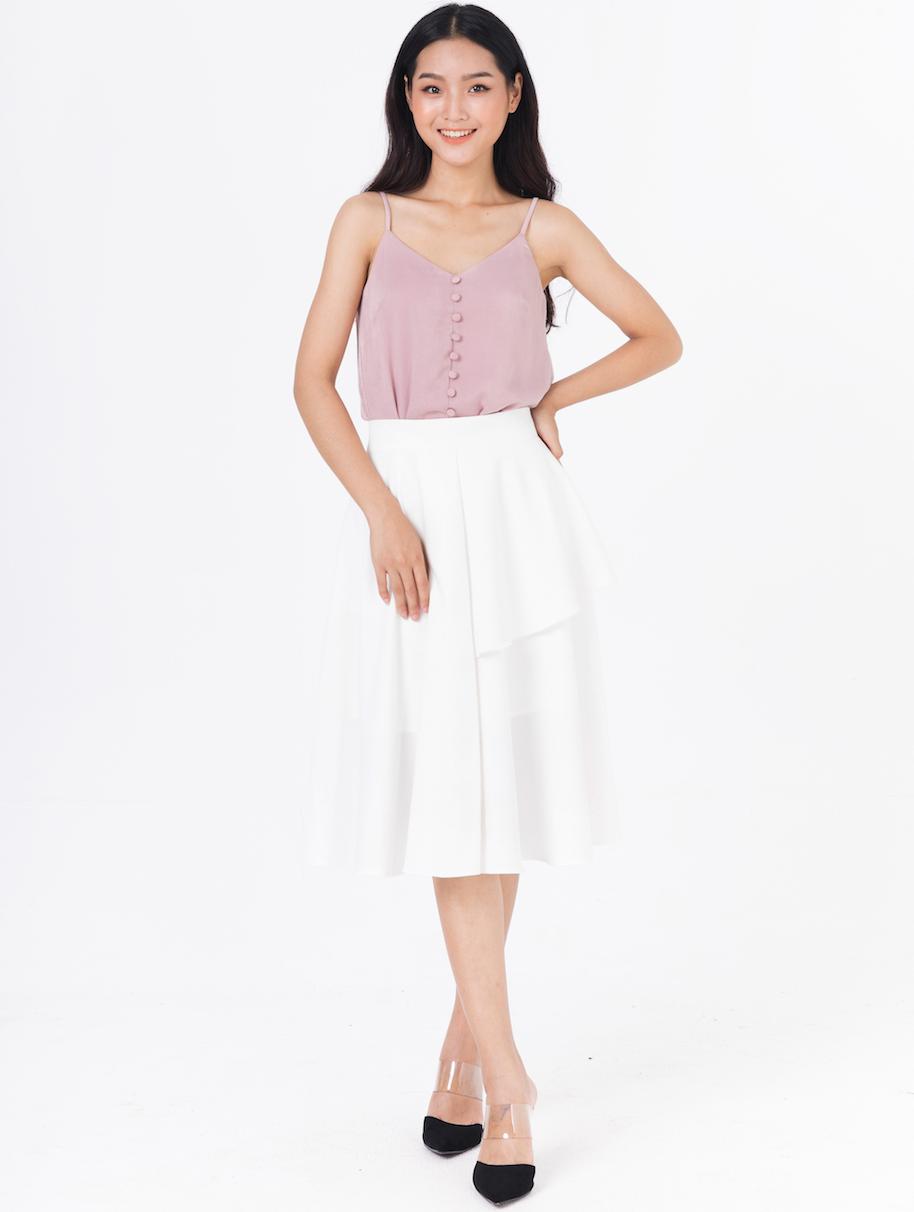 Áo 2 Dây với hàng cúc bọc tạo điểm nhấn trẻ trung, nữ tính. Áo có thể phối theo nhiều phong cách, với quần sóc hay quần tây cá tính, hoặc với chân váy xoè