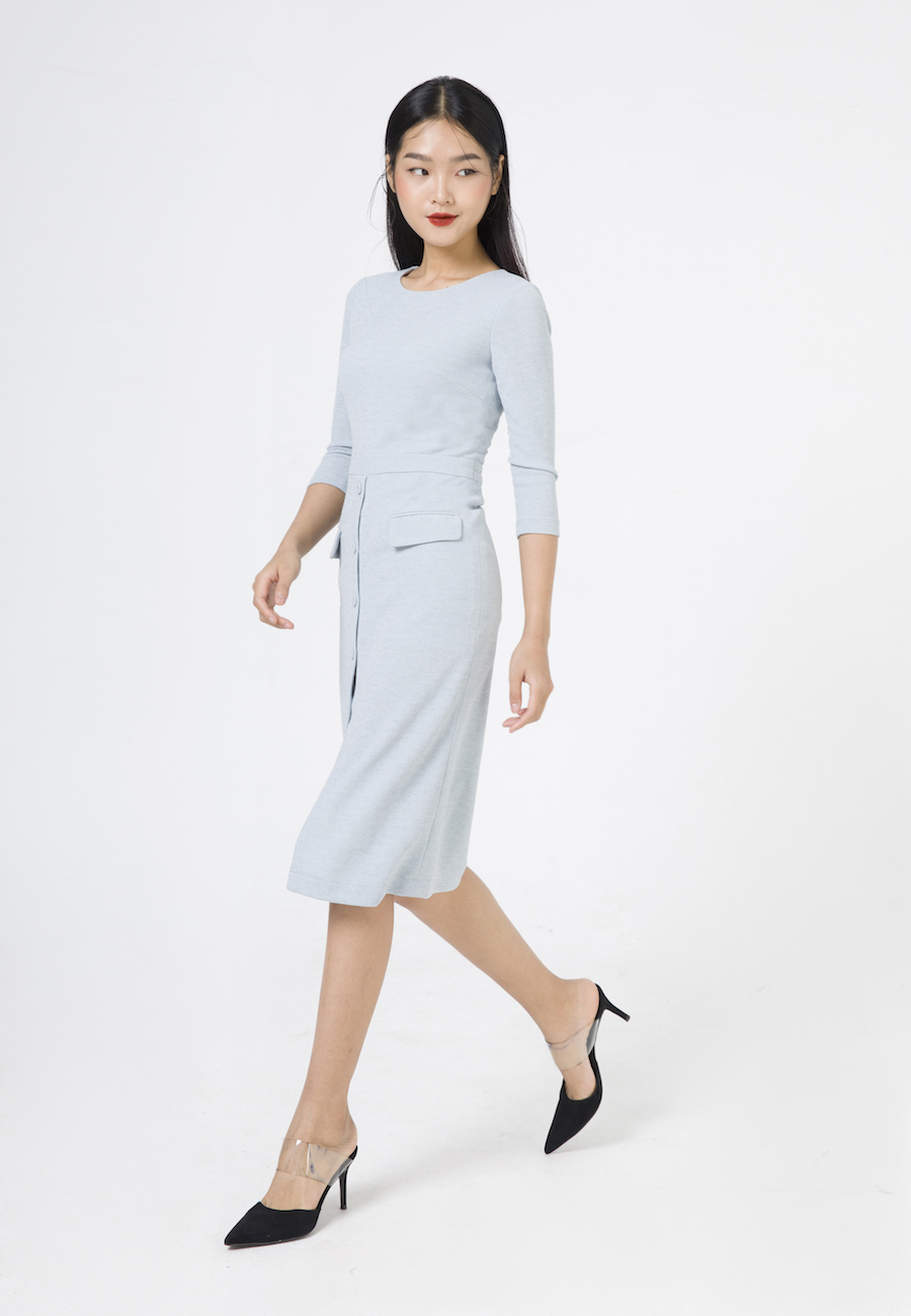 - Đầm dáng ôm midi dài qua gối