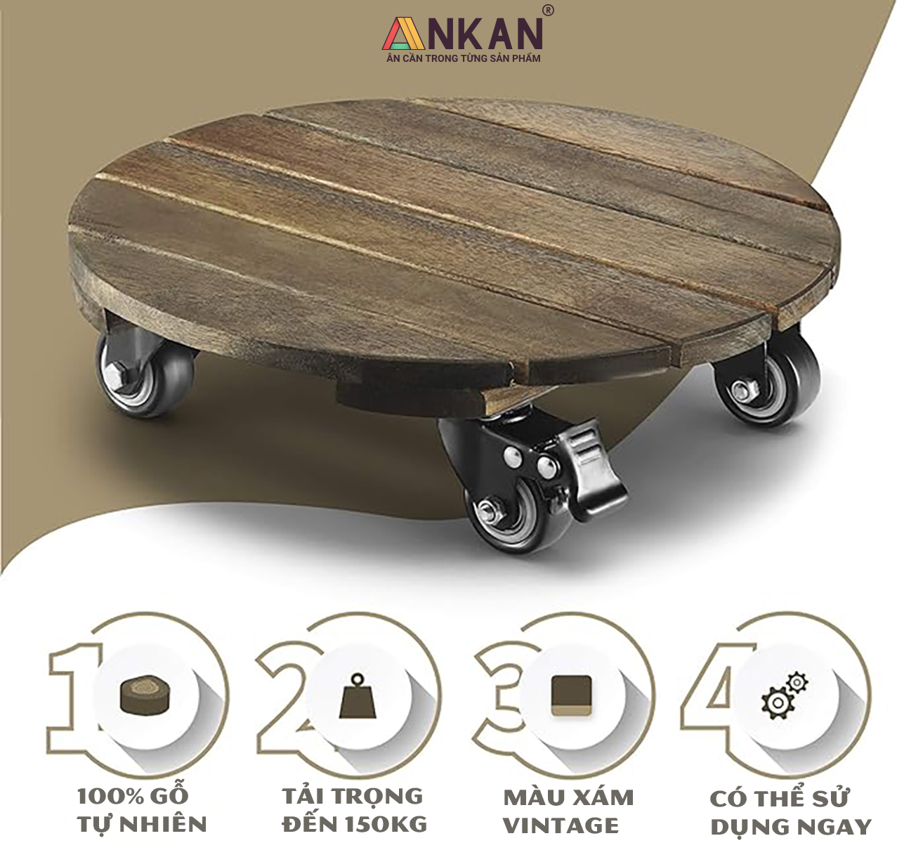 Hiện tại chỉ có ANKAN đang bán sản phẩm đế lót chậu cây có bánh xe cao cấp như hình ảnh bên dưới. ANKAN cam kết bán đúng sản phẩm như hình ảnh cung cấp.