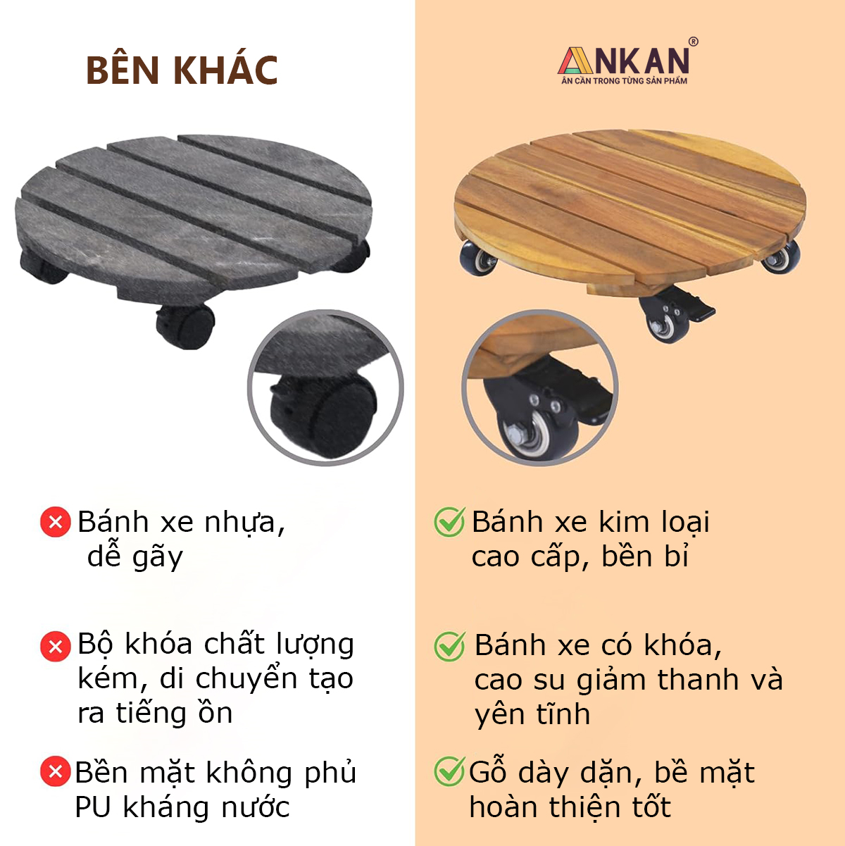 Hiện tại chỉ có ANKAN đang bán sản phẩm đế lót chậu cây có bánh xe cao cấp như hình ảnh bên dưới. ANKAN cam kết bán đúng sản phẩm như hình ảnh cung cấp.