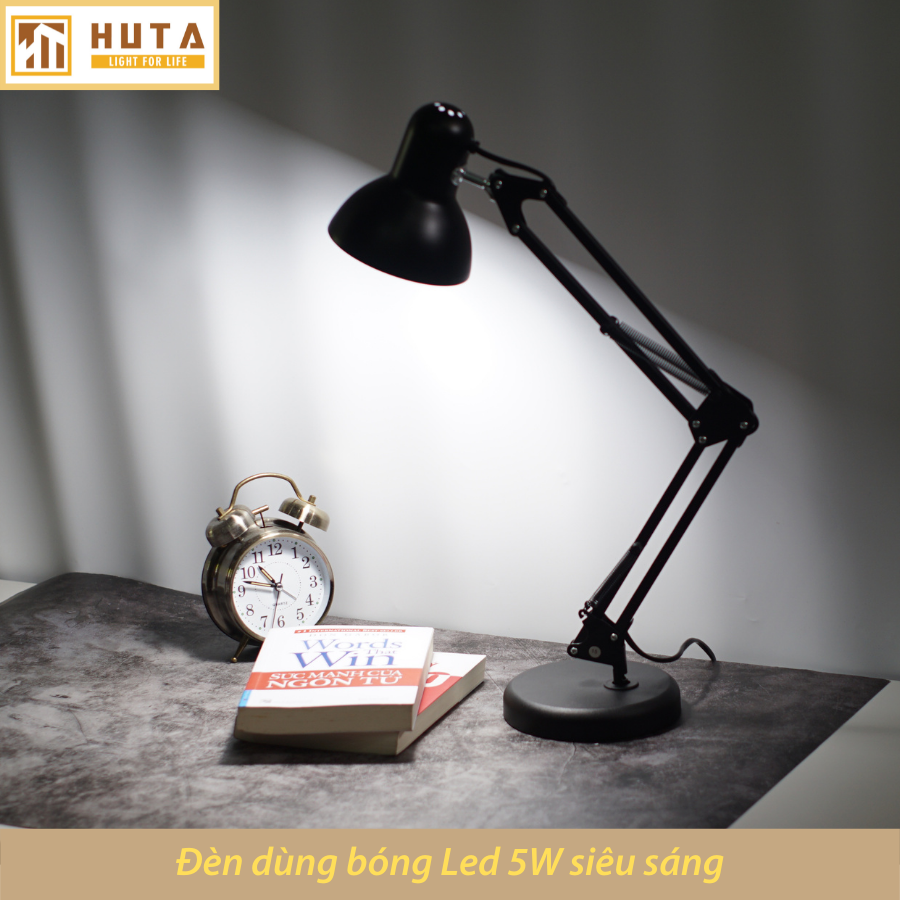 ✨Đèn Bàn Làm Việc Thép HUTA KYSU1 Kèm Bóng Led Chống Cận, Bảo Vệ Mắt, Khớp Nối Cong Dễ Điều Chỉnh, Decor Trang Trí Bàn Học Đọc Sách