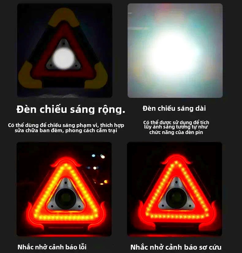 ✨Đèn Cảnh Báo Tam Giác SOS LED COB Pin 6400mAh Sạc Năng Lượng Mặt Trời Cho Xe Đường Dài Tàu Thuyền Biển Báo Công Trình