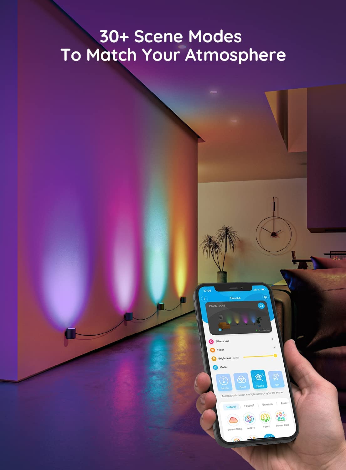 Với ứng dụng Govee Home, bạn có thể tùy chỉnh đèn cố định của mình với bất kỳ màu sắc và hiệu ứng. Chọn một trong số hơn 30 chế độ ánh sáng có sẵn để tạo hiệu ứng tâm trạng cho bất kỳ bữa tiệc.