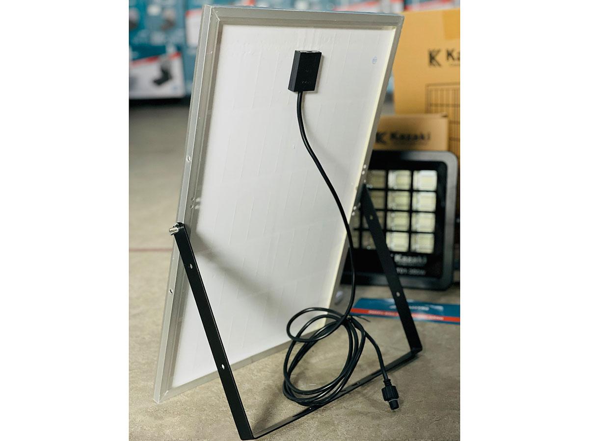 – Tấm pin năng lượng KZ-PT01-300W kích thướng lớn giúp hấp thụ ánh sáng tốt và sạc nhanh vào ban ngày. Dòng điện được lưu trữ vào pin để cung cấp cho hoạt động của đèn.