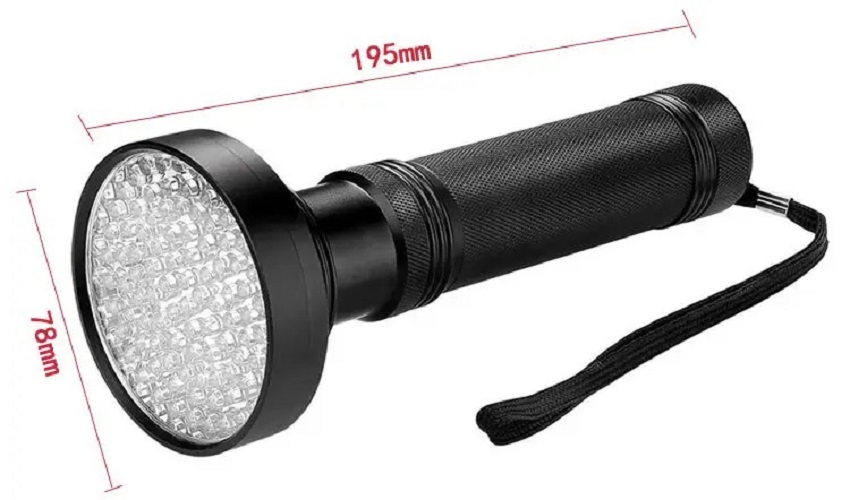 Loại: 395nm UV ,100 LED, Pin: 6 x Pin AA (không bao gồm)