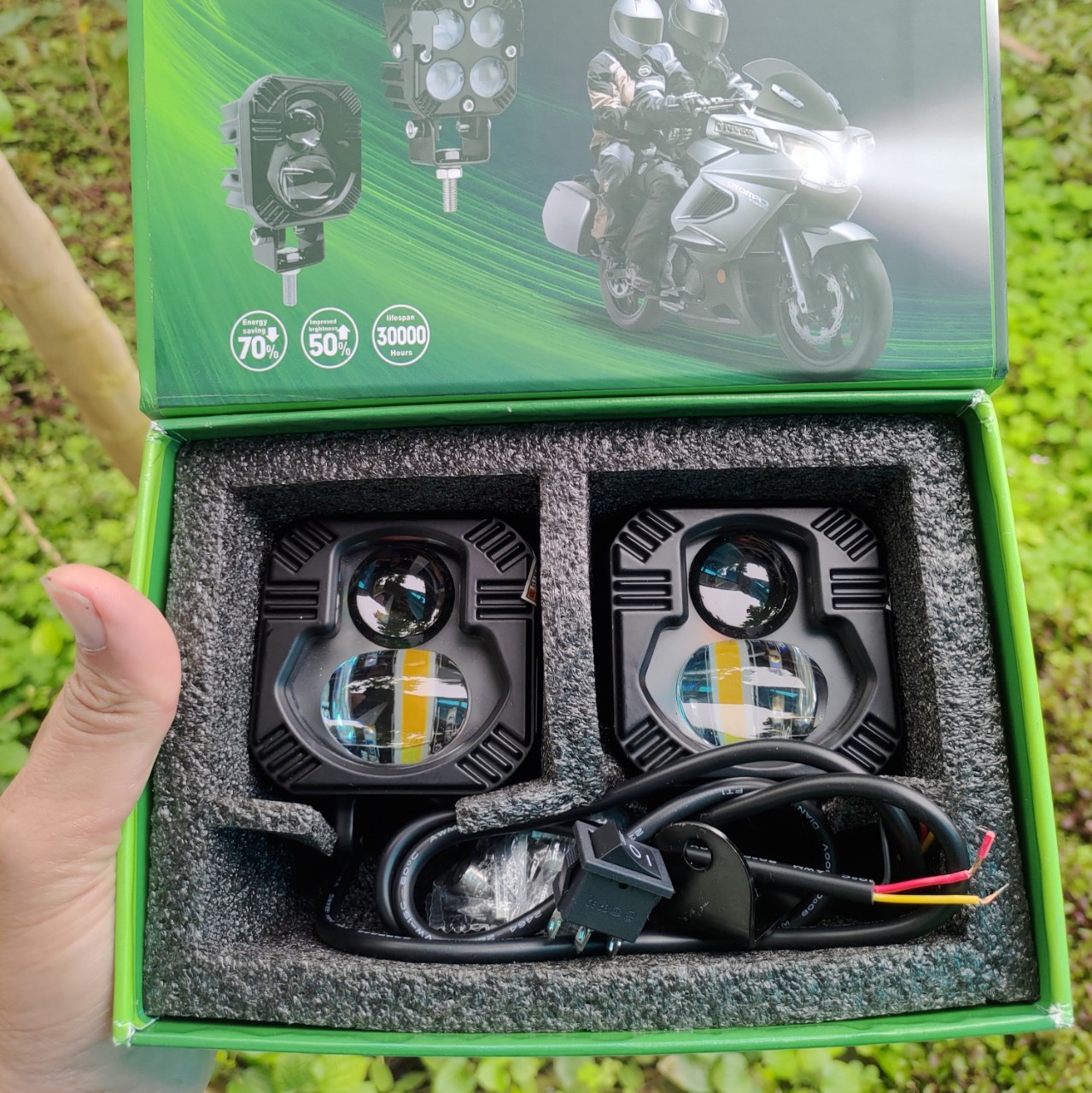 siêu hót mẫu đèn trợ sáng đặc biệt có trợ pha laser siêu xa. Ngoài các tính năng cos vàng pha trắng siêu sáng thì đèn còn được trang bị chế độ trợ pha laser siêu xa, Giú tầm nhìn của các bạn rất xa trong đêm. Đèn có thiết kế cực kì đẹp mắt , thân đèn bằng thép nguyên khối cnc giúp tản nhiệt tốt hơn. Đèn được trang bị 2 thấu kính cầu cao cấp siêu trong giúp ánh sáng mạnh không bị đục qua thời gian sử dụng. Đèn được bảo hành 12 tháng nên các bạn hoàn toàn yên tâm sử dụng. Ưu Điểm Sáng Cos Rộng Và Laser Xa - Độ Pha Xa Hơn 50M - Vỏ : Hợp Kim Nhôm Đúc Nguyên Khối - Công Suất : Cos 50W Đèn Pha 55W - Chức Năng : Pha Và Cos (Có Thể Bật Cos Và Pha Hay Laser Cùng Lúc) - Nhiệt Màu: Cos Vàng/ Pha Trắng - Khoảng Cách Xa Của Pha Nhìn Rõ : 50M - Cos Rộng : 10m - Mua 1 Hay 2 Đèn Đều Đầy Đủ Phụ Kiện Lắp Đặt Thông tin shop trong hộp hàng có vấn đề gì xin lh trực tiếp để shop hỗ trợ nhanh nhất ạ, cảm ơn bạn.