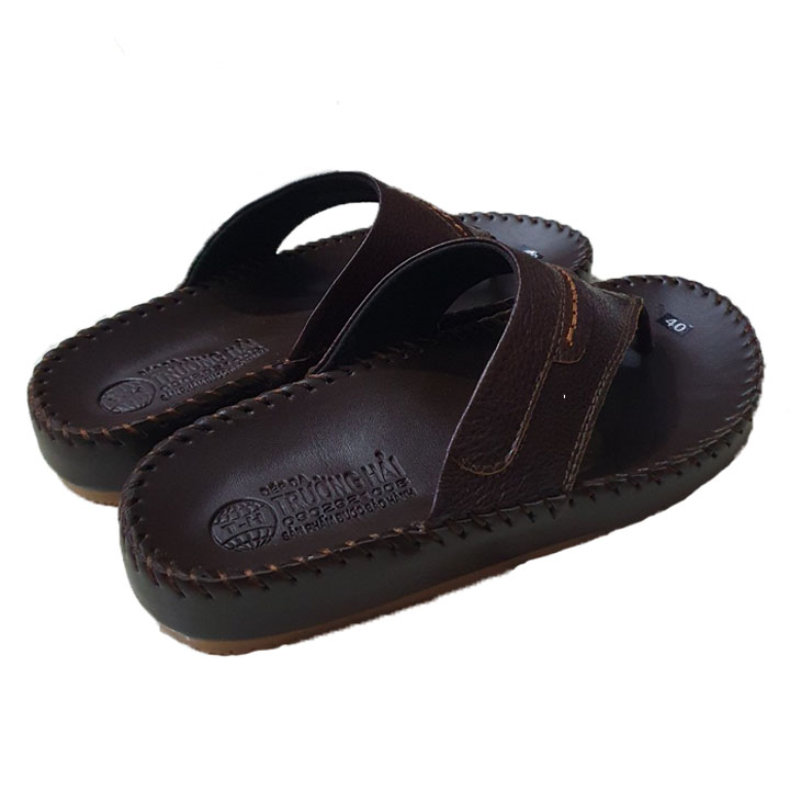 ✨Dép nam xó ngón nâu da bò may viền chính hãng Trường Hải XN1004