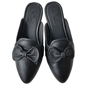 Giày Sục Nữ Giày Cao Gót 3Cm Da Bò Thật Siêu Mềm Cao Cấp Evelynv 3P2916 (Đen)