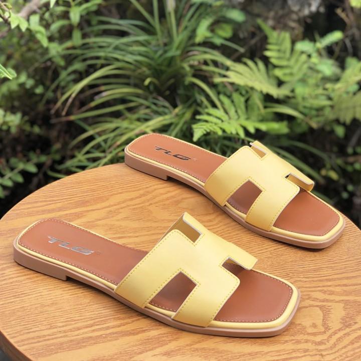 ✨Dép Thời Trang Nữ Da PU Cao Cấp Quai Ngang Chũ H Lót Dép Mềm Êm 21307