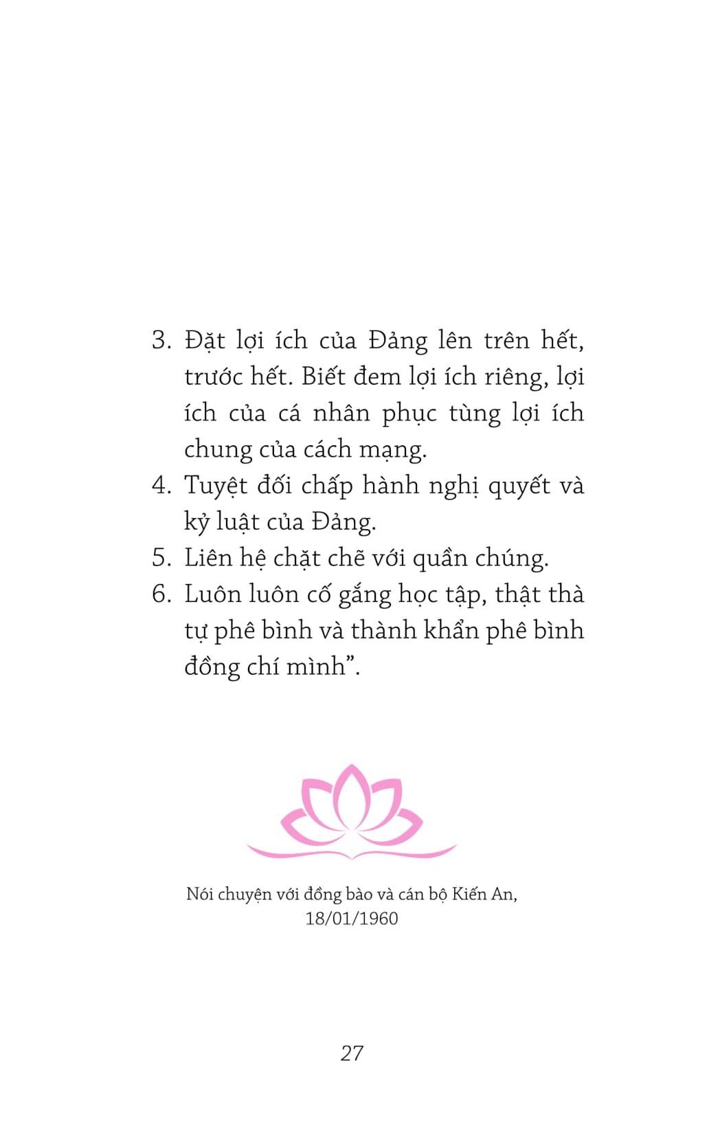 Nhà xuất bản Trẻ phối hợp với Phó giáo sư, Tiến sĩ Vũ Tình & Tiến sĩ Đặng Thị Minh Phượng, những người nghiên cứu về chuyên ngành Hồ Chí Minh, chắt lọc từ bộ Hồ Chí Minh toàn tập những bài phát biểu, những bài viết của Người về Đảng Cộng sản Việt Nam, bao gồm các nội dung: Đội tiên phong của giai cấp & dân tộc; Đảng viên; Nguyên tắc tổ chức & hoạt động; Xây dựng Đả để giúp độc giả dễ tiếp cận hơn với tư tưởng Hồ Chí Minh về những nội dung này.