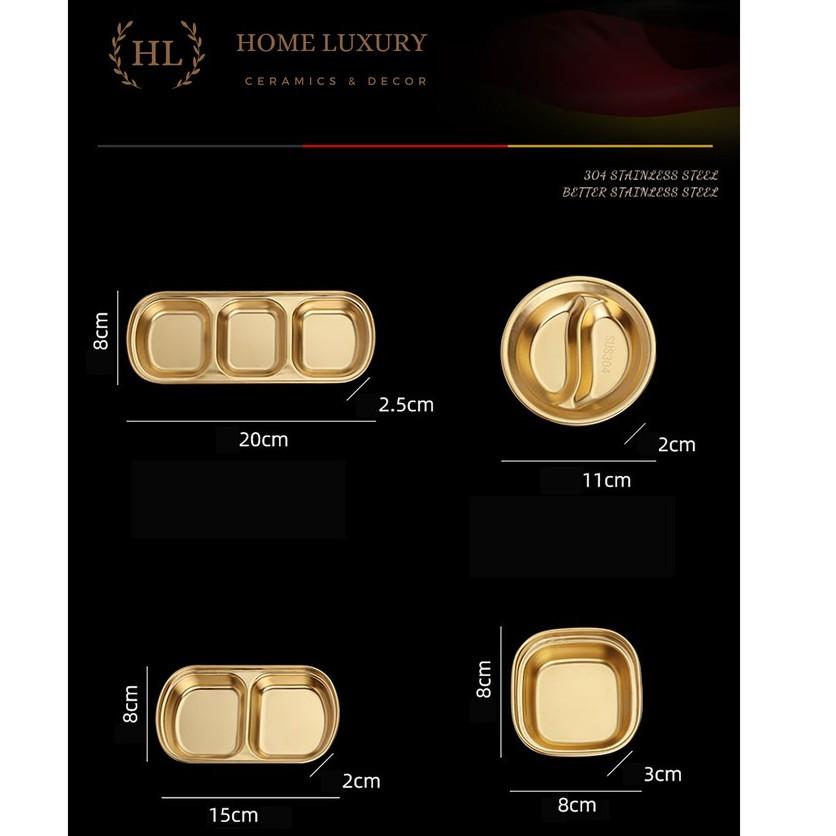 Khay đựng gia vị inox không ăn mòn 304 Hàn Quốc | Đĩa chấm inox vàng để panchan, đồ ăn kèm