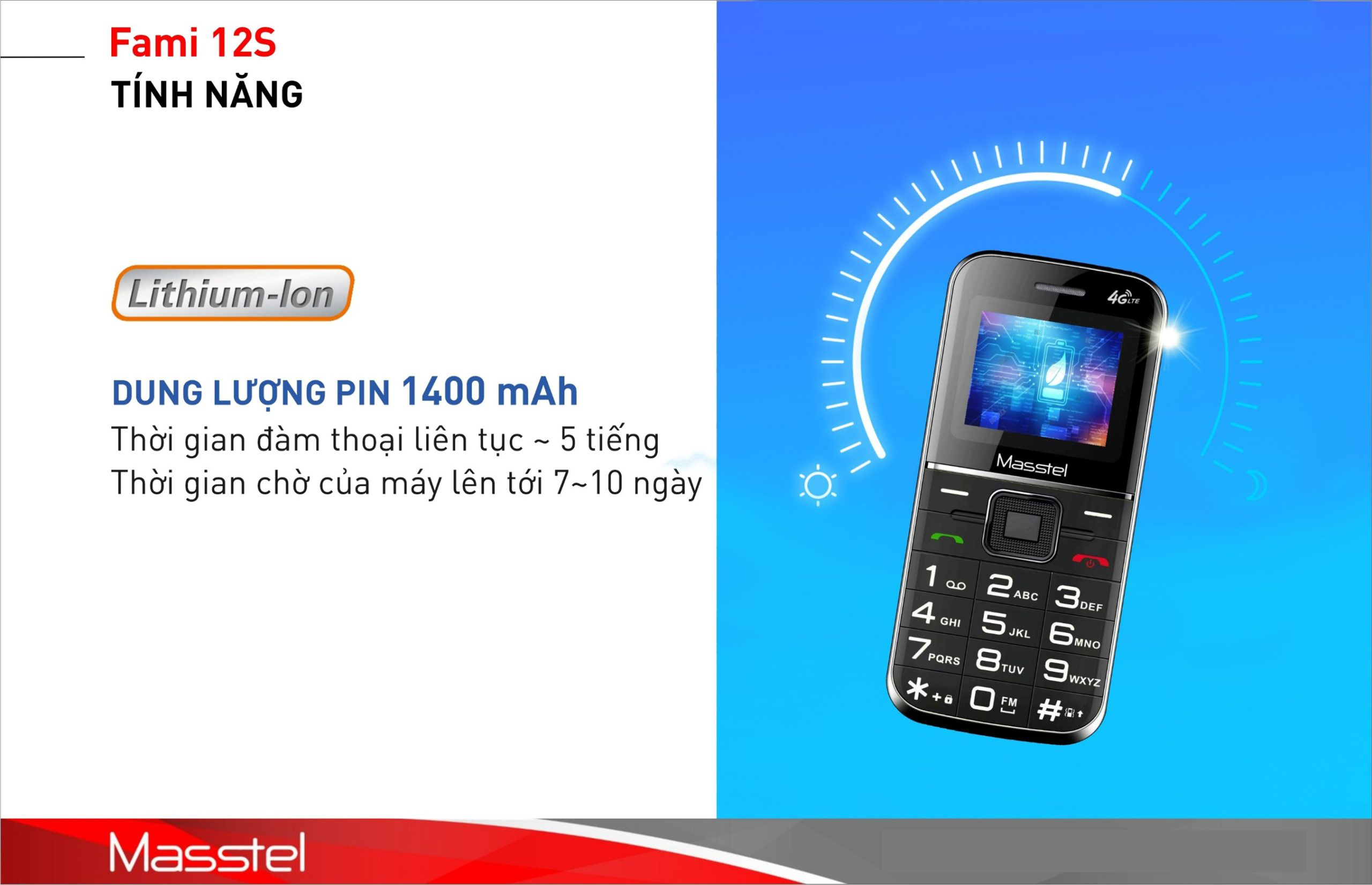 Điện Thoại Người Già Masstel Fami 12 4G, Viền Kim Loại, Pin Trâu, Truy Cập Internet 4G, FM Không Dây