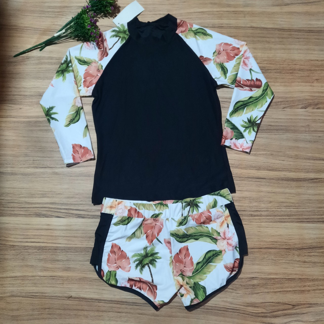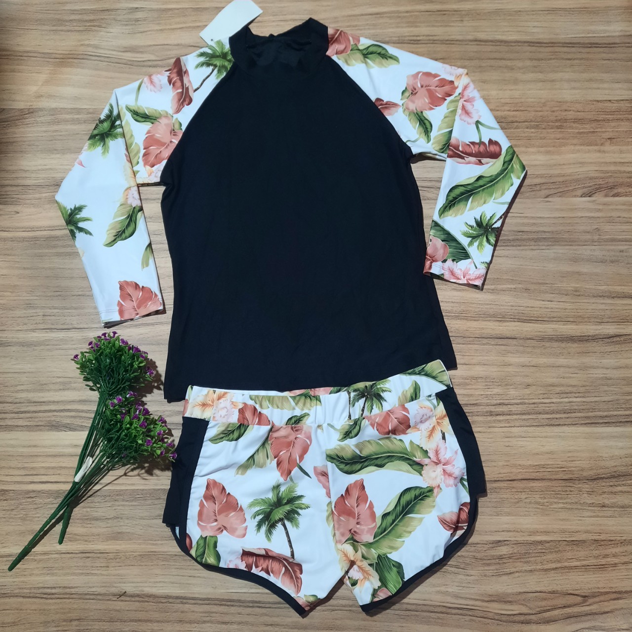 - Mẫu đồ bơi đôi cực xinh cho các couple đi biển cùng nhau ạ, dáng dài tay chống nắng thể thao tiện dụng. - Set 3 chi tiết bao gồm: Áo bơi dài tay