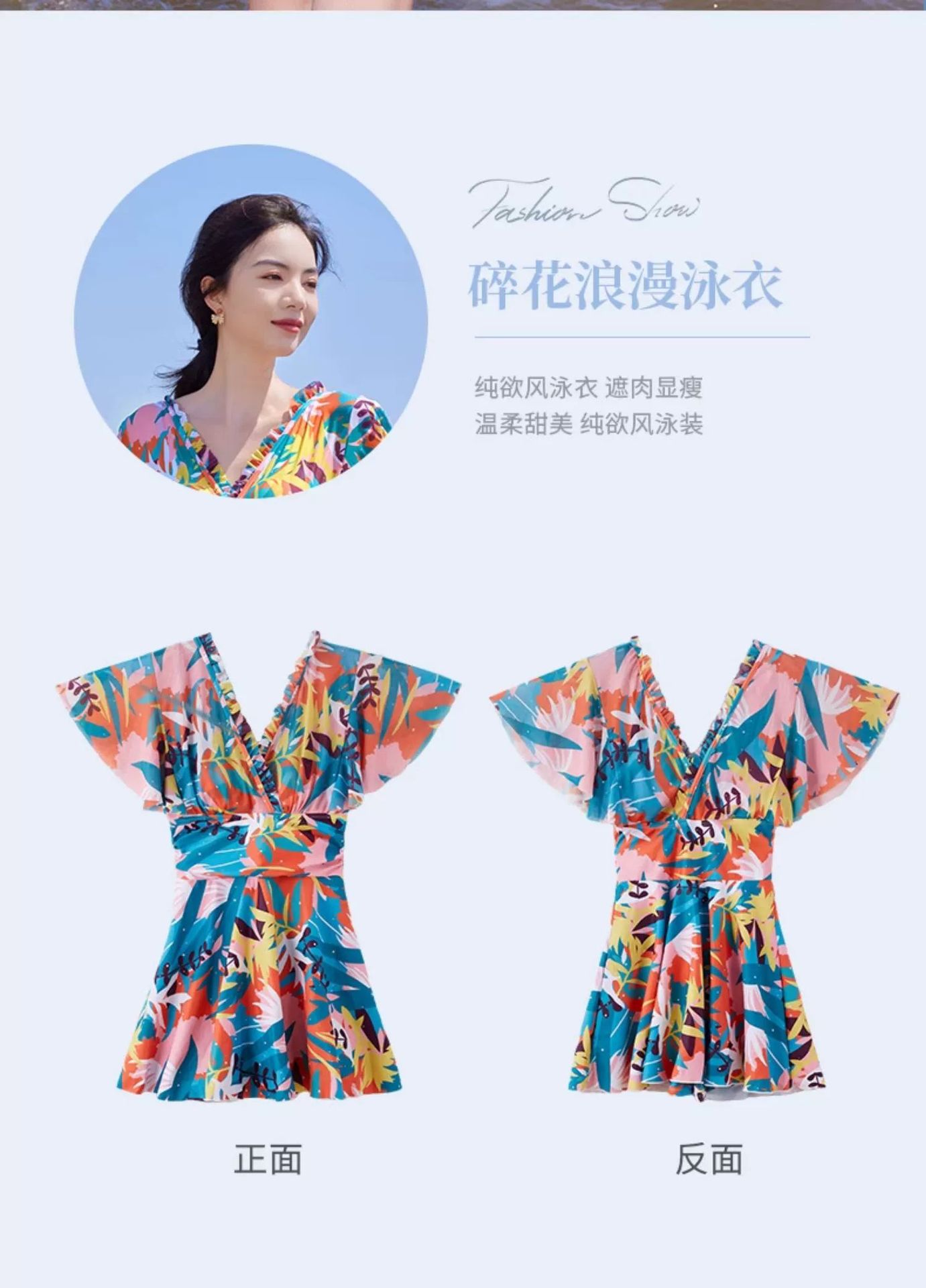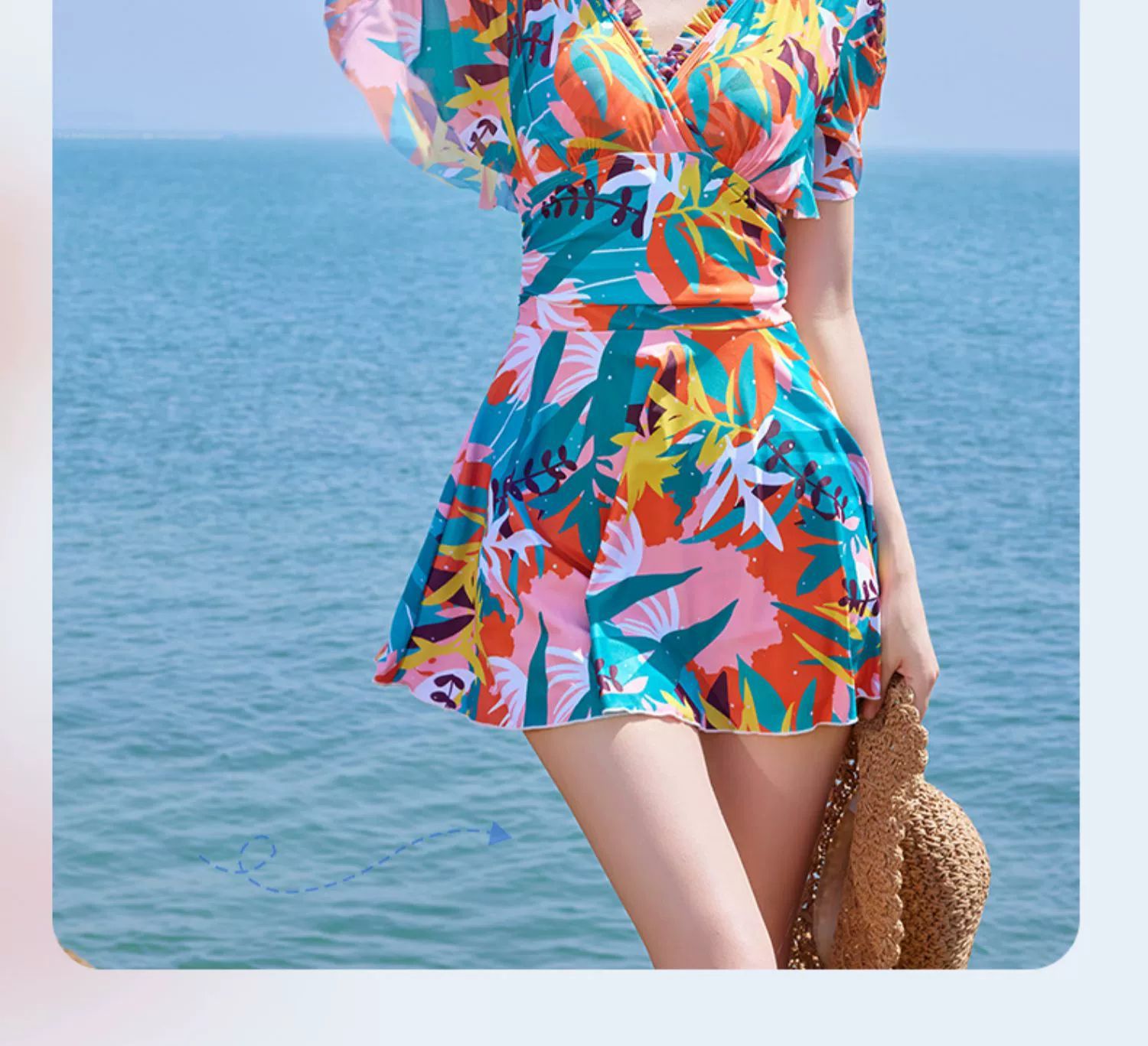 KIỂU DÁNG Màu sắc: Hoa Đồ bơi một mảnh tay ngắn dạng váy kín đáo Kiểu dáng váy có khoá kéo tiện lợi Ngực áo có Mút Mỏng Đường may sản phẩm tỉ mỉ, tinh