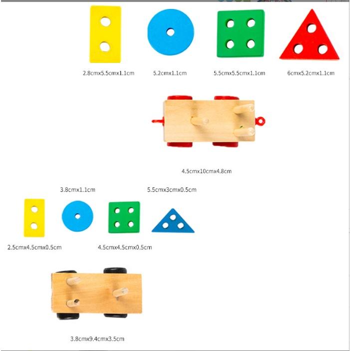 Đồ Chơi Đoàn Tàu Màu Sắc Thả Cọc Hình Khối, Xe Lửa Thả Cọc Hình Trụ Gỗ Giáo Dục Sớm Cho Bé
